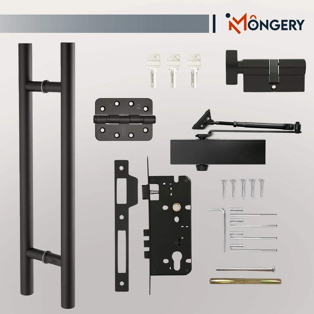 Mortise Lock with 1200mm (48") H Handle, Door Closer & Hinges ,Mortise Lock with 600mm (24") H Handle, Door Closer & Hinges ,Mortise Lock with Lever Handle, Door Closer & Hinges |